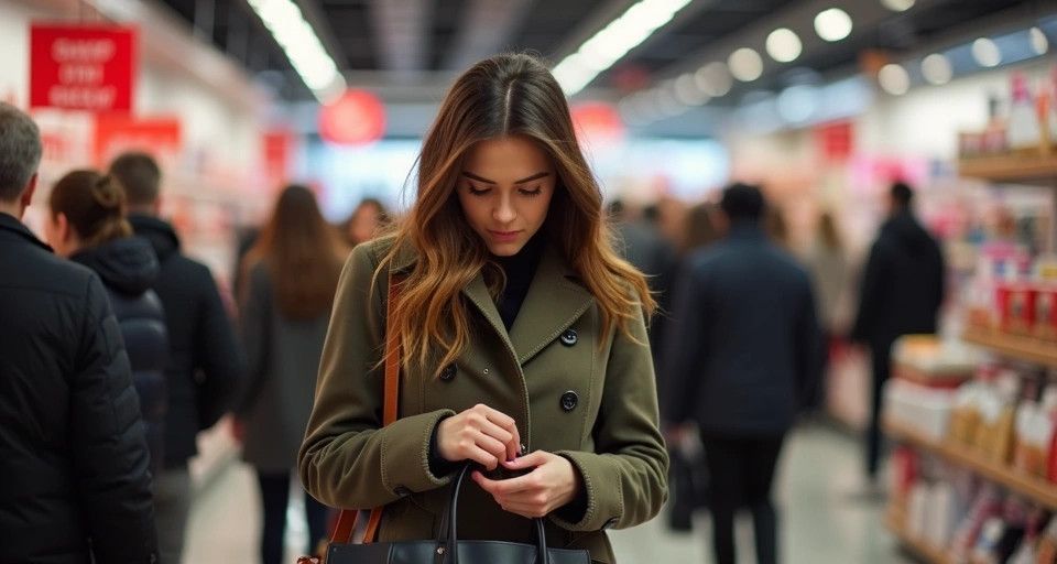 - Torebkę trzymaj zamkniętą i z przodu. Nie odkładaj jej ani nie pokazuj zawartości portfela przy kasie.