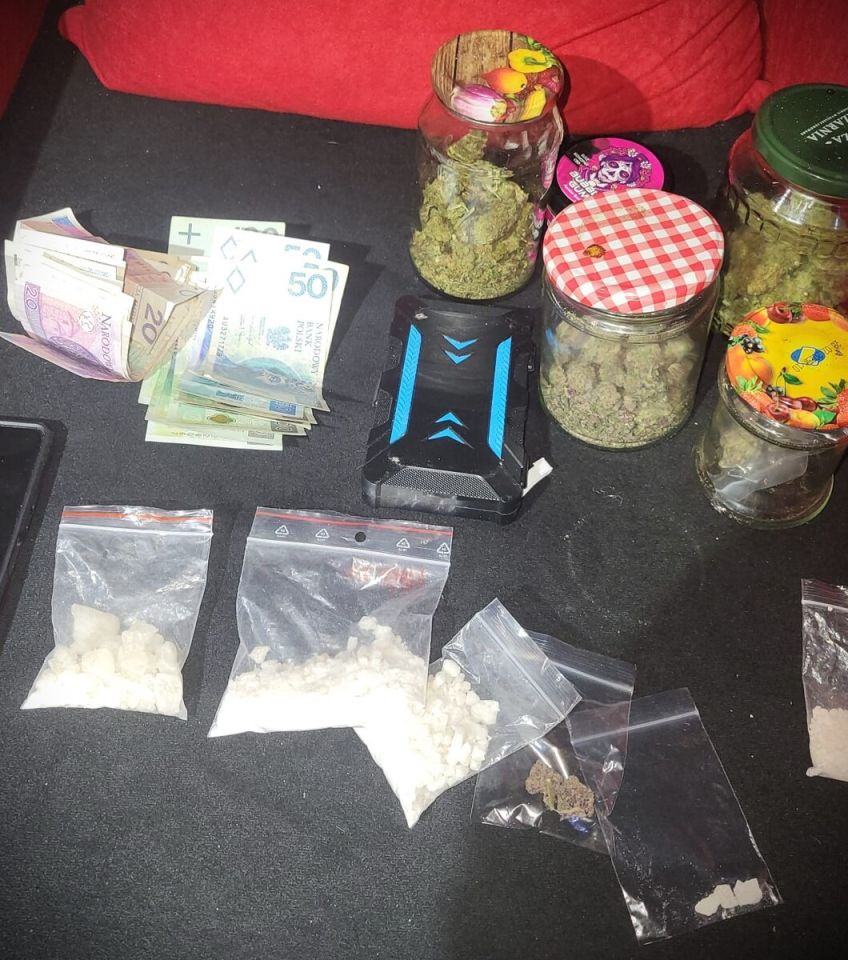 Funkcjonariusze Posterunku Policji w Kadzidle zatrzymali 26 letniego mieszkańca powiatu ostrołęckiego podejrzanego o posiadanie znacznych ilości narkotyków. Podczas przeszukania mieszkania policjanci zabezpieczyli amfetaminę, mefedron i marihuanę, z których można było przygotować kilkaset porcji handlowych. Znaleziono także gotówkę i wagę elektroniczną, mogącą służyć do porcjowania substancji.